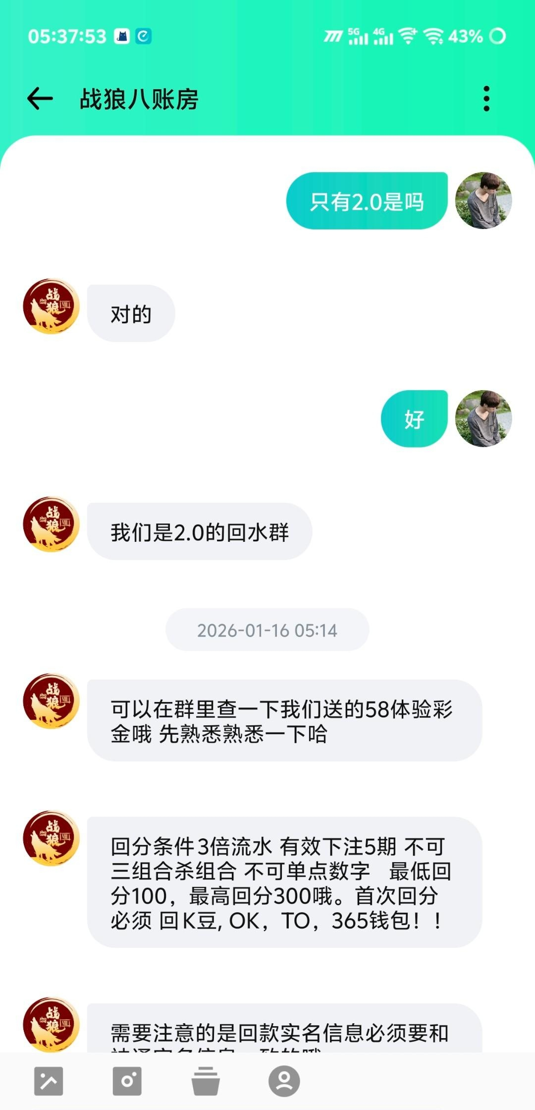 链接进去以后注册签到会有积分,积分可以换彩金。接着首页横幅战狼点进去找客服,客服这有提示下载APP➕好友再找他领取体验金。(楼主领了58没打出来)