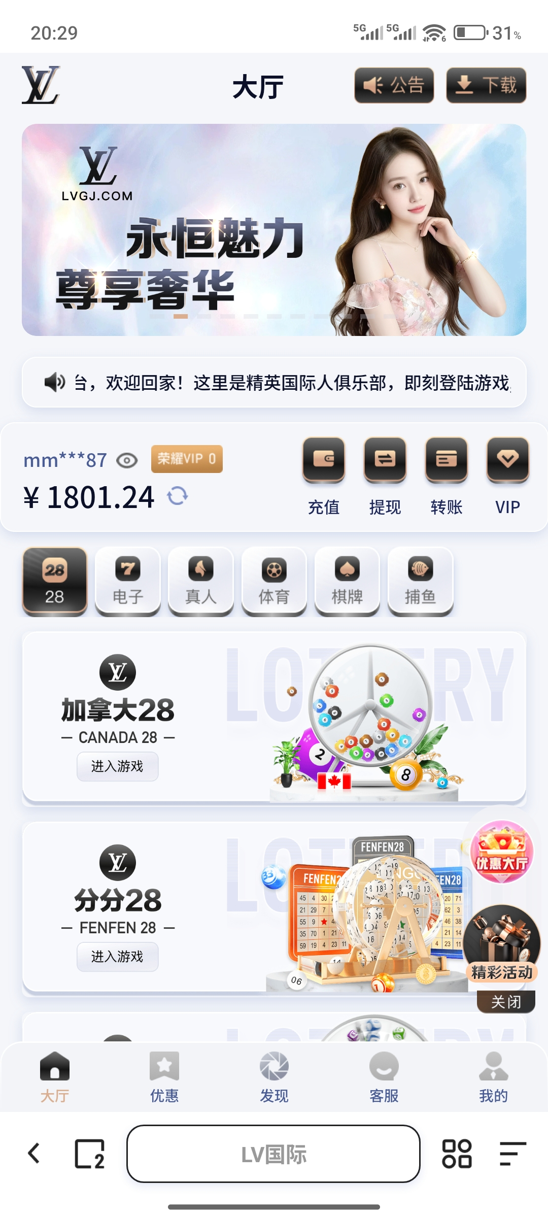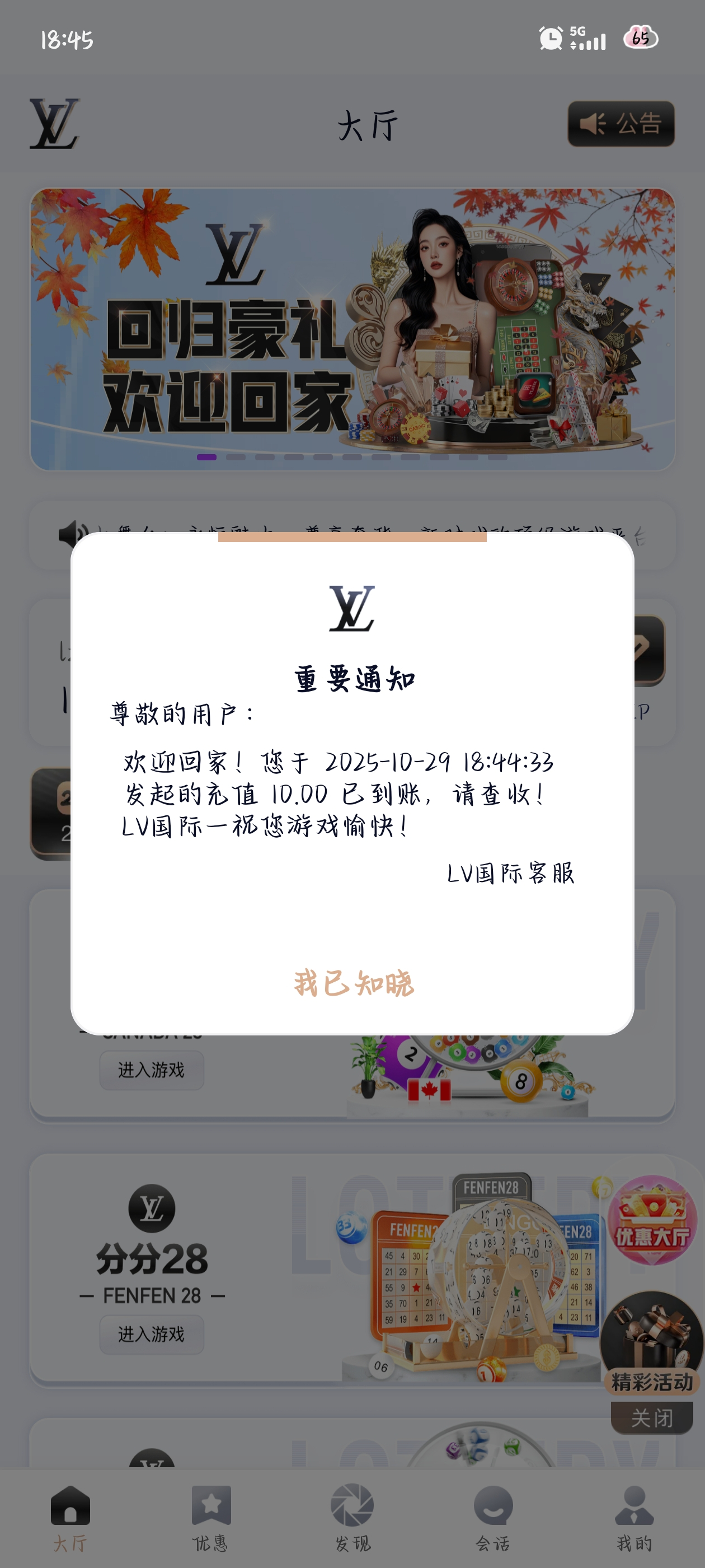 【LV国际】新人送28猪脚饭✅首200+100